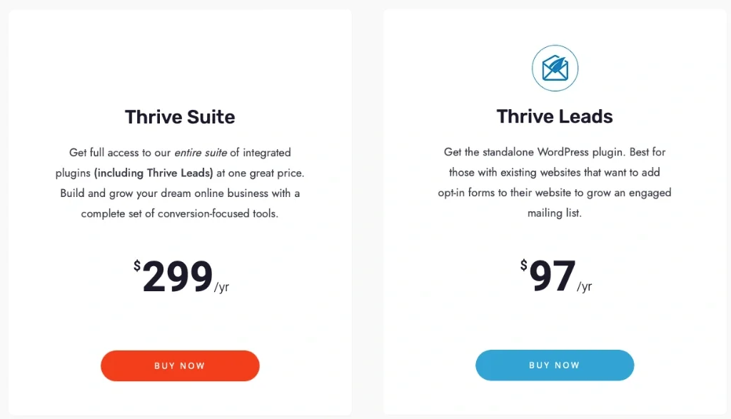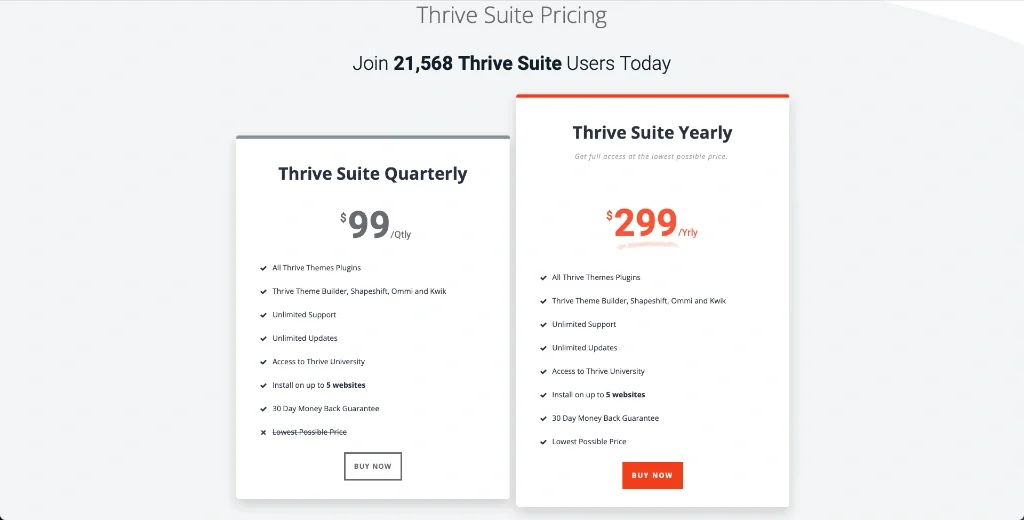 Compare for instance Thrive Leads ($299 yearly if you pick the membership) with its competitor OptinMonster, which only captures leads, and the most popular plan costs $348/year (and it’s limited to 25,000 Pageviews!)